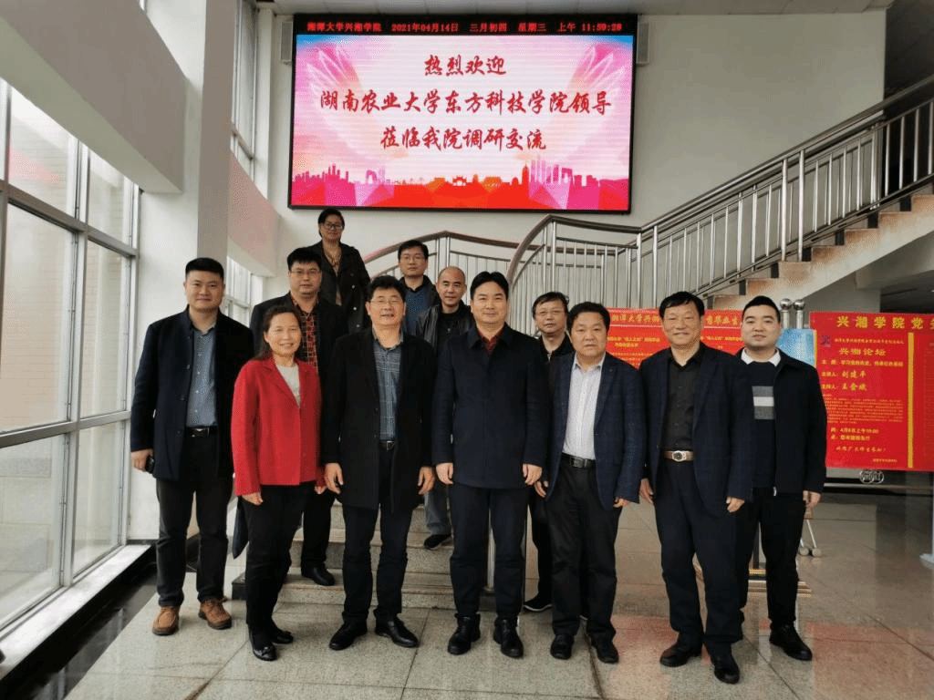 4月14日上午,湖南农业大学东方科技学院常务副院长李觅路一行来我院调研交流,座谈会于会议室504召开,全体院领导与会。
