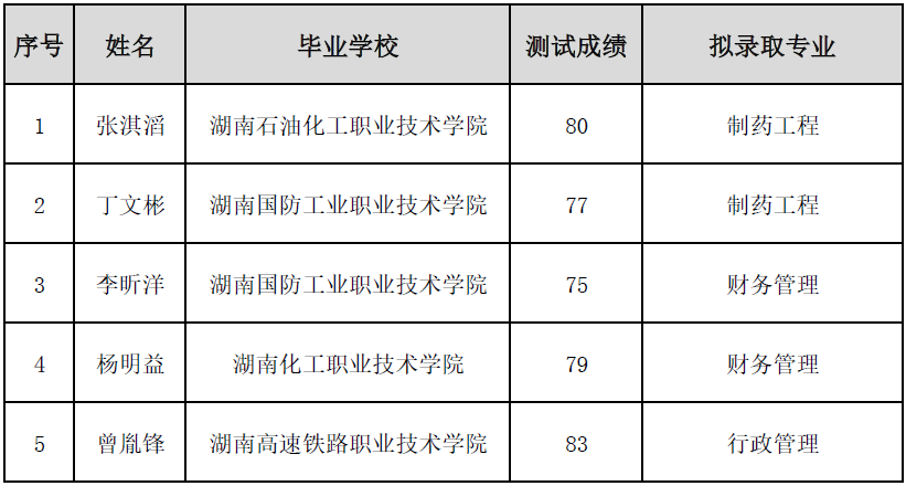 根据湖南省教育厅《2023 年湖南省普通高等学校专升本考试招生工作实施方案》、湖南省教育考试院《关于做好2023年湖南省普通高等学校“专升本”考试招生工作的通知》及《taptap最新官网2023年专升本考试招生章程》等相关文件精神,我院组织了专升本免试生第一次征集志愿的职业适应性测试,现将测试成绩及拟录取名单公示如下: